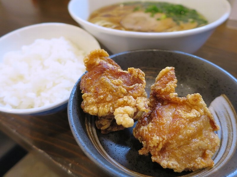 もし平日の昼時間に訪問されましたら「ランチセット」がお薦めです^^ 「唐揚げセット(唐揚げ2個・ライス)」、「水餃子セット(水餃子4個・ライス)」「レディースセット(唐揚げ2個or水餃子4個・本日のデザート)」の3種類があり、ラーメン価格にプラス¥150と安価で満腹になる事ができます^^