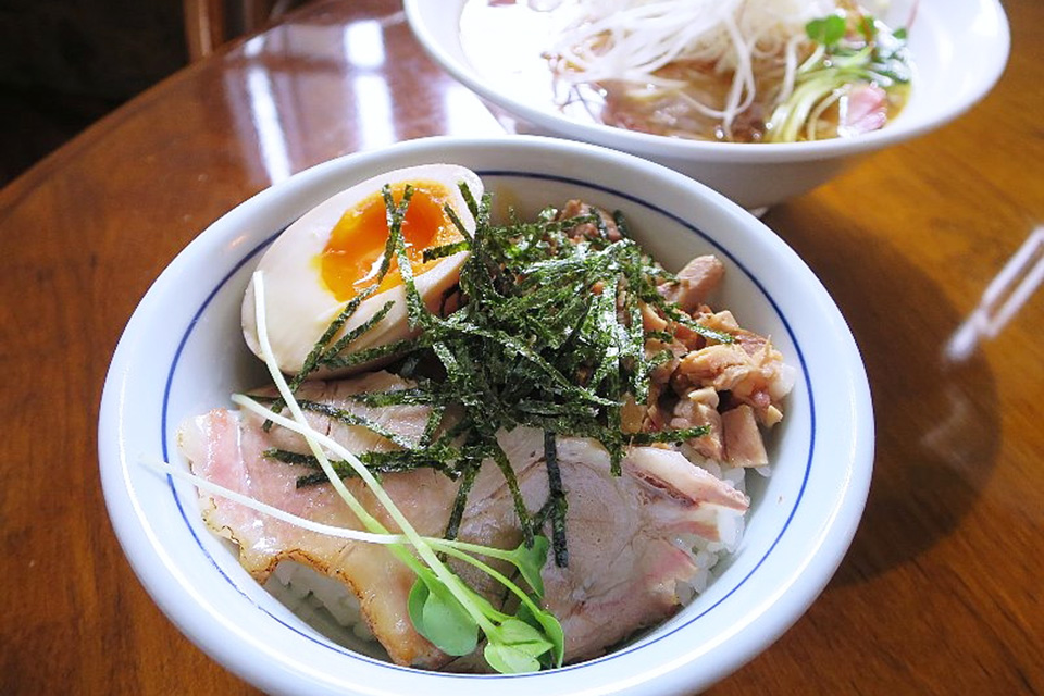 ランチセットは中華そばにミニチャーシュー丼がついて¥800のサービスメニューです。チャーシューに加えて味玉が乗って¥150は超お得だと思います^^