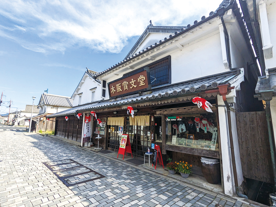 1894年創業の老舗文具店。こちらには柳井名物の「金魚ちょうちん」をモチーフにしたオリジナルの文具や雑貨が約300種揃います。大手メーカーとのコラボ商品も豊富で、その品質は折り紙付き。「こんなものまで?」と驚くような品揃えで、訪れる人の心を和ませます。お土産にもぴったりな、地域愛あふれる文具との出会いを楽しんで。