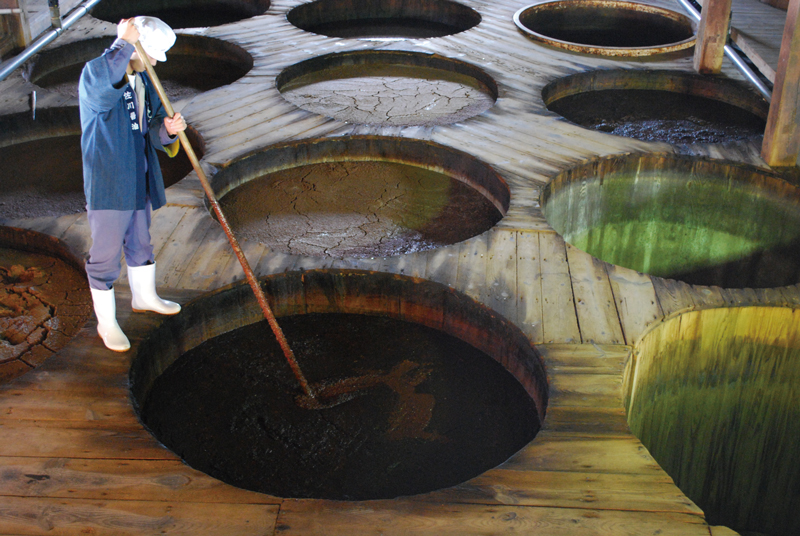 地下70メートルからくみ上げた琴石山系の伏流水を使用。今も30石桶を使った昔ながらの製法で作られています。