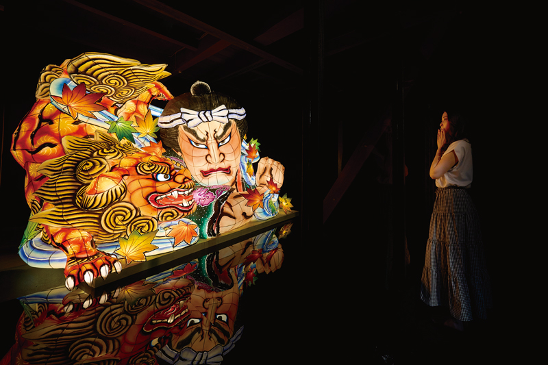 ねぶたルーム(場所は非公開)。2mを超える圧巻の「青森ねぶた」は、山口県初展示!